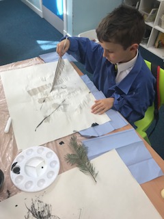 Local artist Alison Price came into class to work with us and showed us how to use different materials, including ink, feathers and branches to create little booklets which are going to be made into a story.