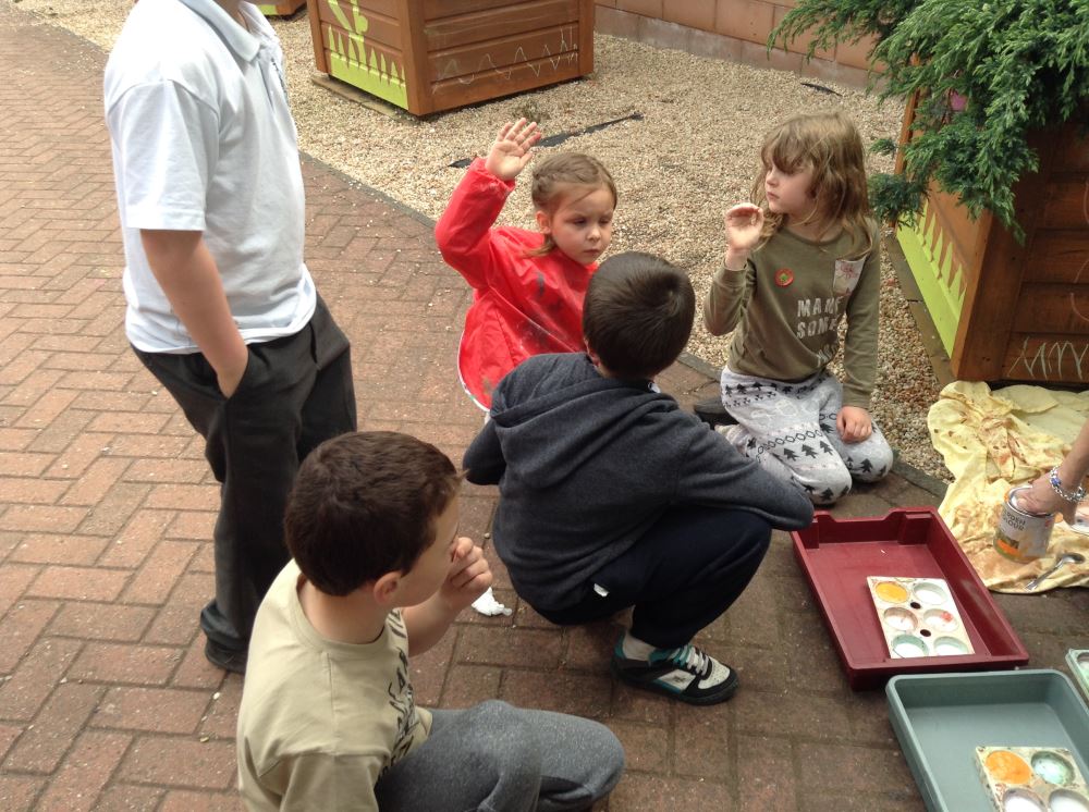 They repainted the games, including Hop Scotch, on the ground and decorated the flower boxes at the front of the school.