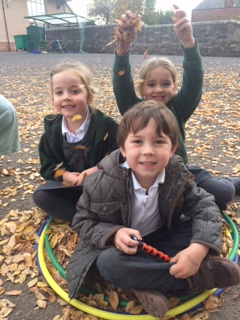 October 2018: When there are fallen leaves on the ground instead of snow, let's make Leaf Angels! What very enterprising children we have here at Dunbarney.