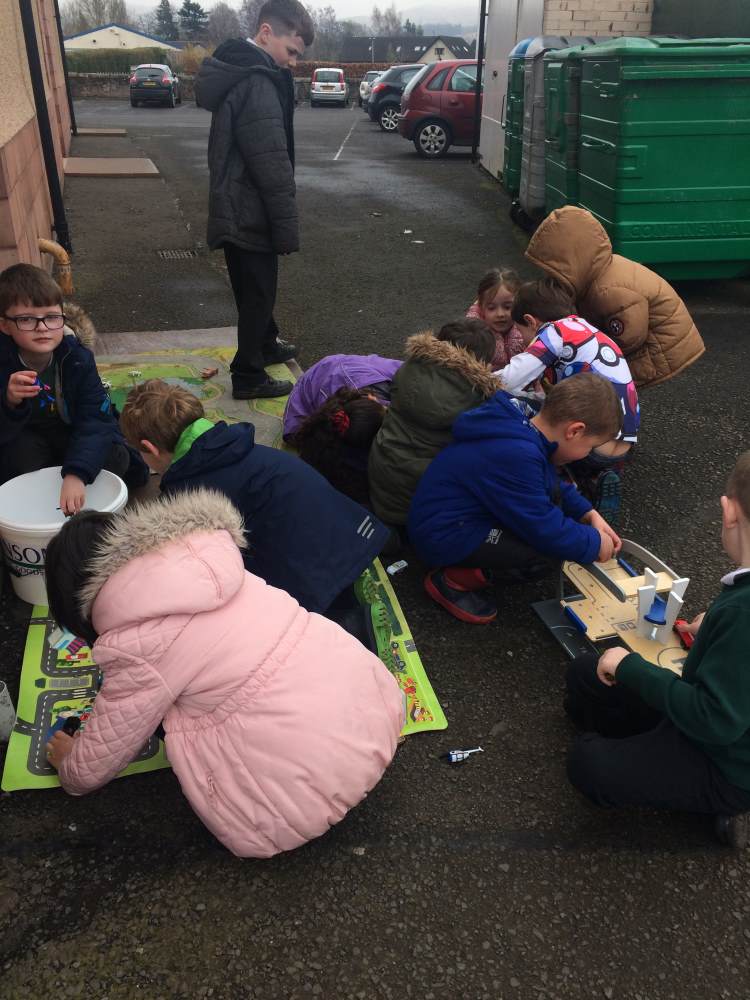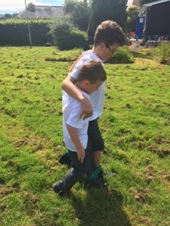Here we see some excellent buddying between P6 and P1, as Isla takes Ryan for a drive in the playground.
