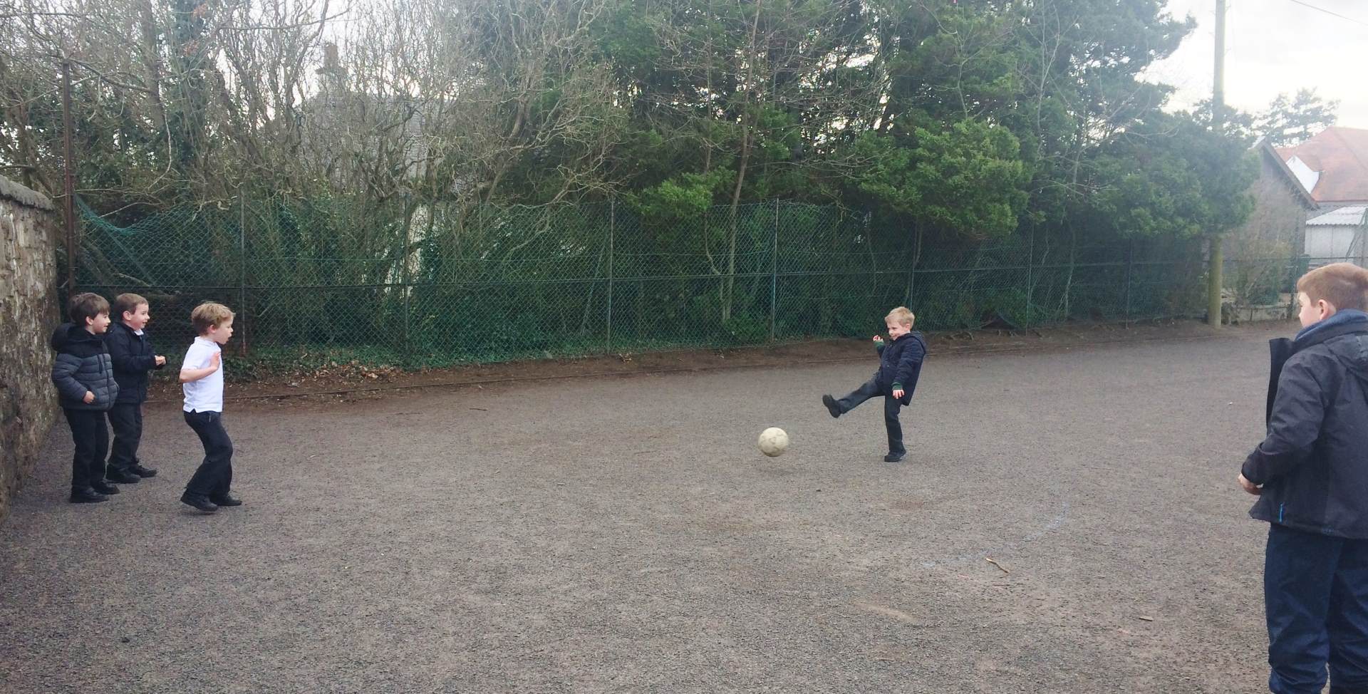 Our lovely new P7s are happy to be enjoying the privilege of playing football every day during football weeks on the activities pitch, now that they are at the top of the school. Perhaps more opportunities to practise will mean that they won't put the ball over the wall quite so often!